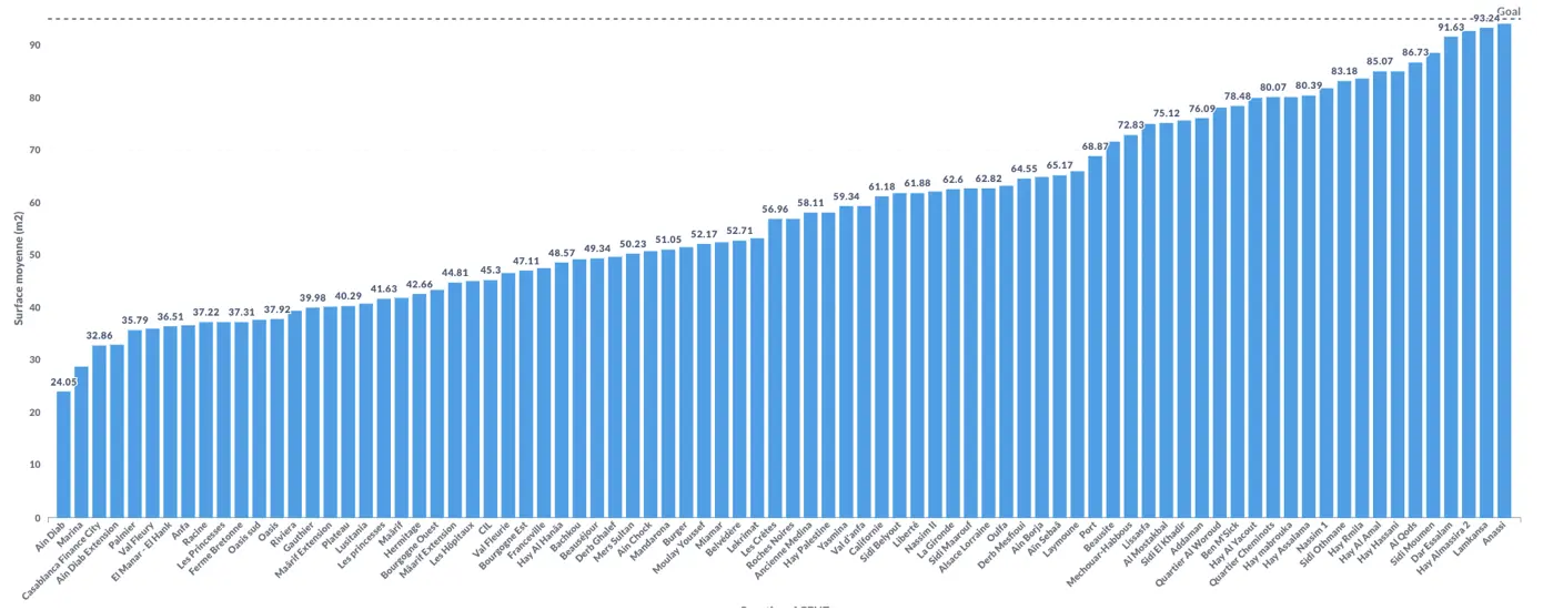 Pour les familles percevant ce revenu, acheter un appartement de deux chambres confortable à Casablanca est extrêmement difficile, sinon impossible. Même dans des quartiers de la capitale jugés abordables, tels que Bachkou, Derb Ghalef ou Mers Sultan, la surface maximale disponible est d'environ 50 m², insuffisante pour une famille. Pour des surfaces avoisinant les 90 m², ces ménages doivent se tourner vers les quartiers périphériques est de Casablanca, comme Sidi Moumen, Ben M’sick ou Anassi, où prédominent les complexes de logements sociaux.